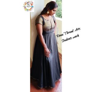 Renu Thread Arts – Stay safe – Trendy yet traditional party wear comfortable longgown done by Our student Suganya for herself, Perfect outfit, keep rocking all the best.😊👍