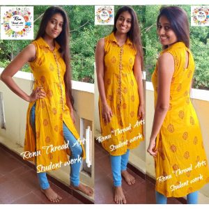 Renu Thread Arts – Halter neck Shirt collar Maxi top by student Ramya’s superb work 😊👌👏👏👍😊