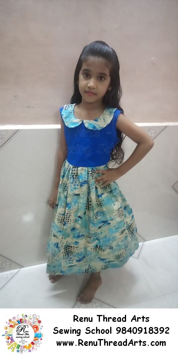 Fashion designing class Weekend batch student Suvipriya’s beginner achivement Peter pan collar waist frock for her daughter neat and perfect outfit