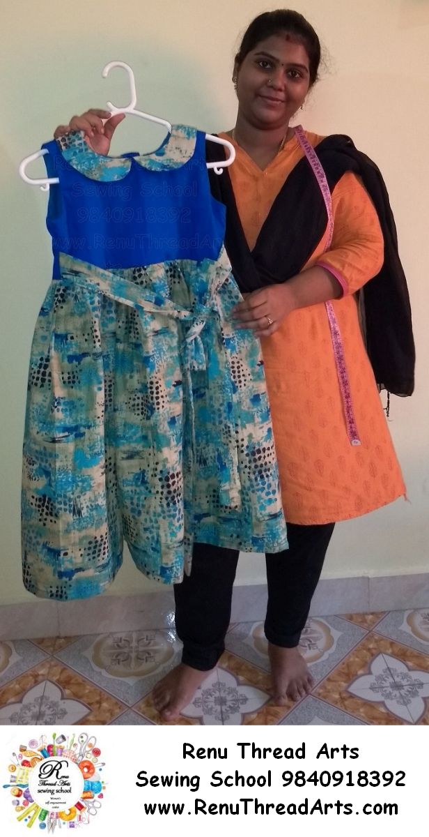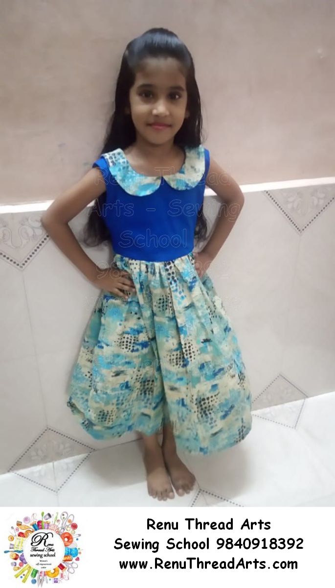 Fashion designing class Weekend batch student Suvipriya’s beginner achivement Peter pan collar waist frock for her daughter neat and perfect outfit