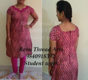 Our student work – Decorative neck with petal sleeves basic kurthi.