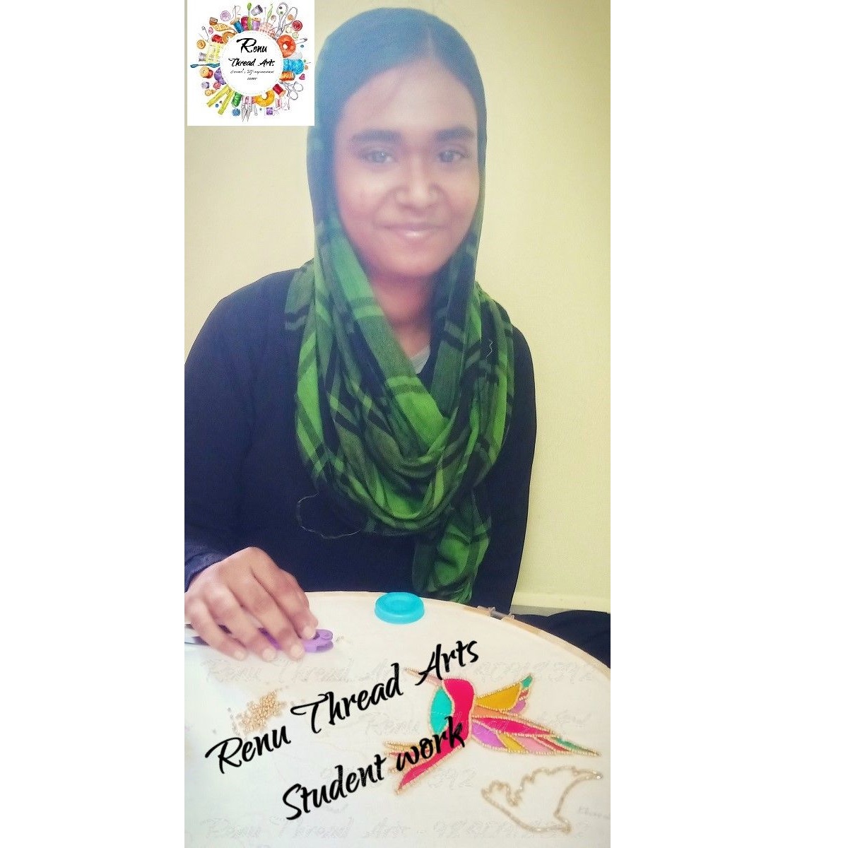 We share our knowledge in the field of Aari hand embroidery to our Renu Thread Arts students. Whoever wants to be self-empowered can utilise Renu Thread Arts.